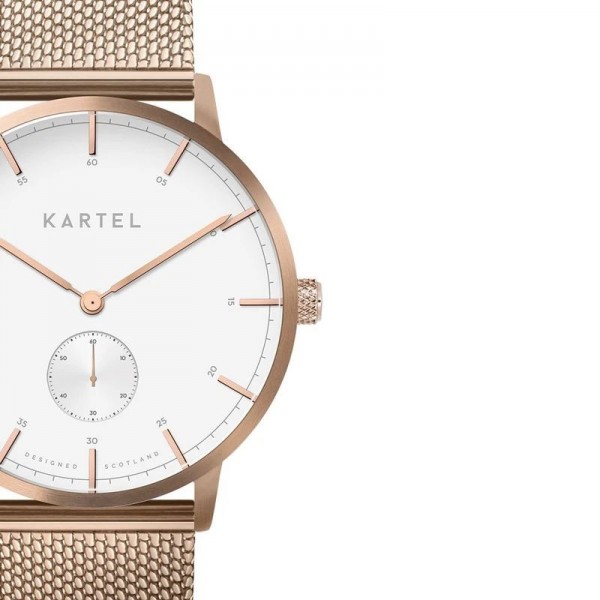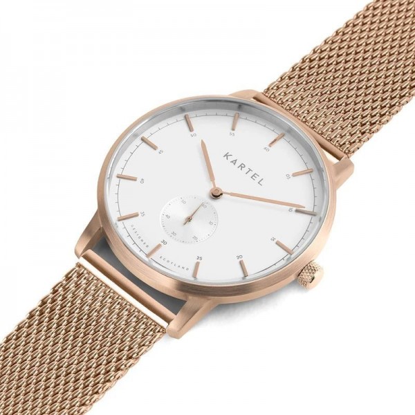 Our best-selling mesh strap Kendrick watch returns in Rose Gold with a recessed sub-dial, low profile mineral glass and a hard wearing stainless steel case.