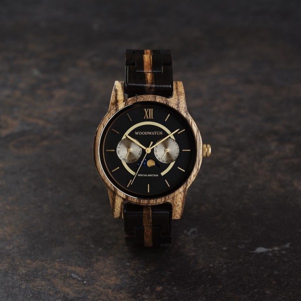 Now available in limited availability - our CLASSIC Special Edition. Made by hand from a unique combination of Ebony Wood from Eastern Africa and Zebrawood from Western Africa and featuring golden details. Only 100 pieces are available. Each watch is uniquely numbered. Get yours now!