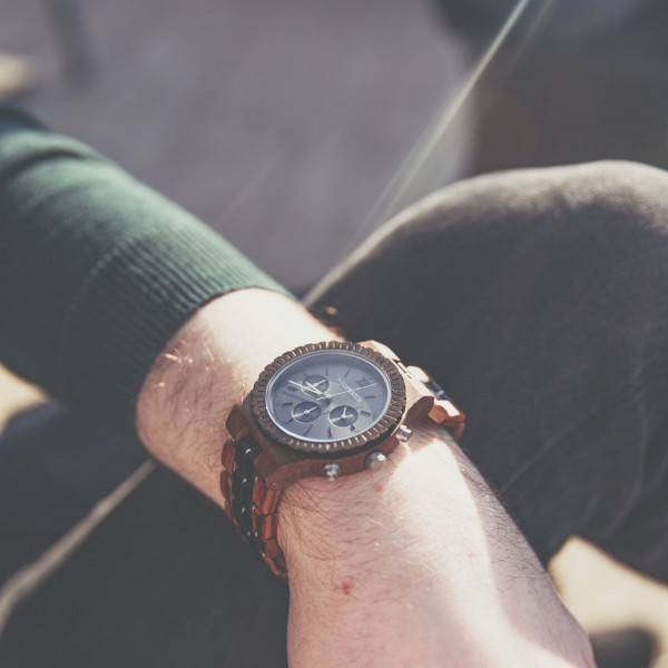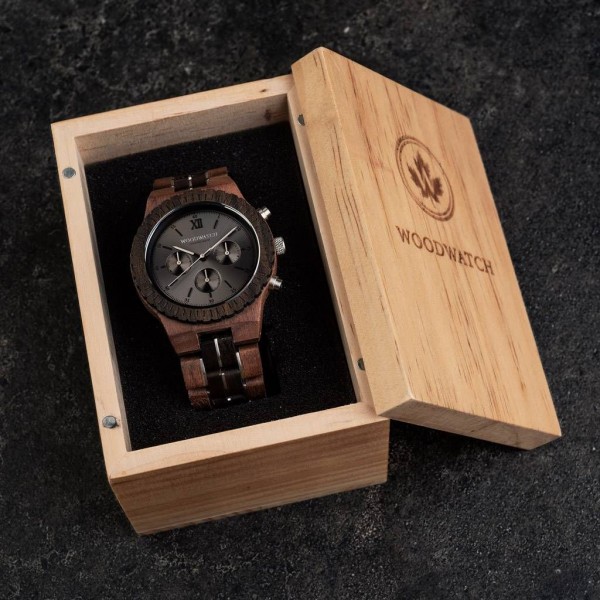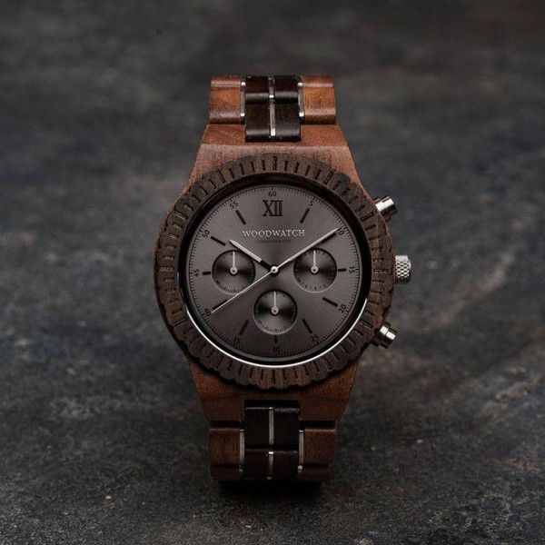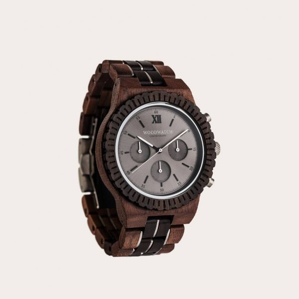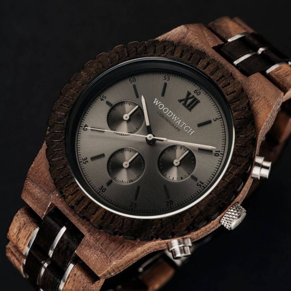 Prepare for adventure with our fully featured, hand-crafted Chronograph wrist watch. This premium design watch features a 45mm walnut case, black stainless steel dial and a SEIKO VD54 movement. The unique new strap combines sustainable walnut wood and black sandalwood with high-quality stainless steel links. Splashproof and sapphire coated, this Chronograph WoodWatch makes the perfect travel companion. Make every second count with this unique statement piece.